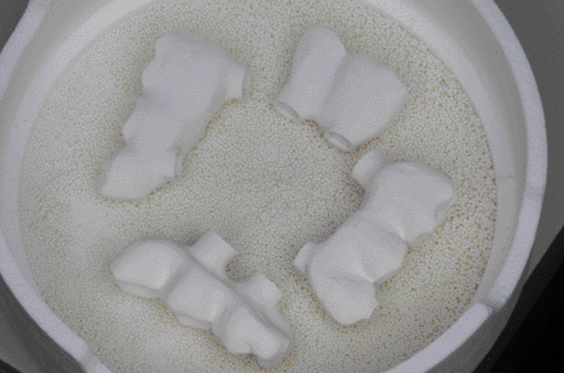After the substructures are created they must be placed in a sintering tray which usually has sintered beads that allow the restorations to move. One thing I appreciate about the Sintra Plus is the furnace comes with a beadless tray, which allows for better control of the sintering process. The beadles tray allows the substructures to move without the use of sinter beads. It’s very important the substructures can move freely since they are going to shrink to the required size during sintering. Any restrictions in movement can cause stress on the substructures and cause fractures or even breakage. It is essential that the different zirconia types are kept separate because they have different sintering temperatures. Sintering at the wrong temperature will compromise the microstructure, because sintering temperature determines the crystal size. Due to the temperature differences, each zirconia material has its own chemical composition. One other feature of the Sintra Plus that I appreciate is that you can stack sintering trays, and each sinter tray has a lid, so different zirconia brands can be kept separate without risk of cross contamination.